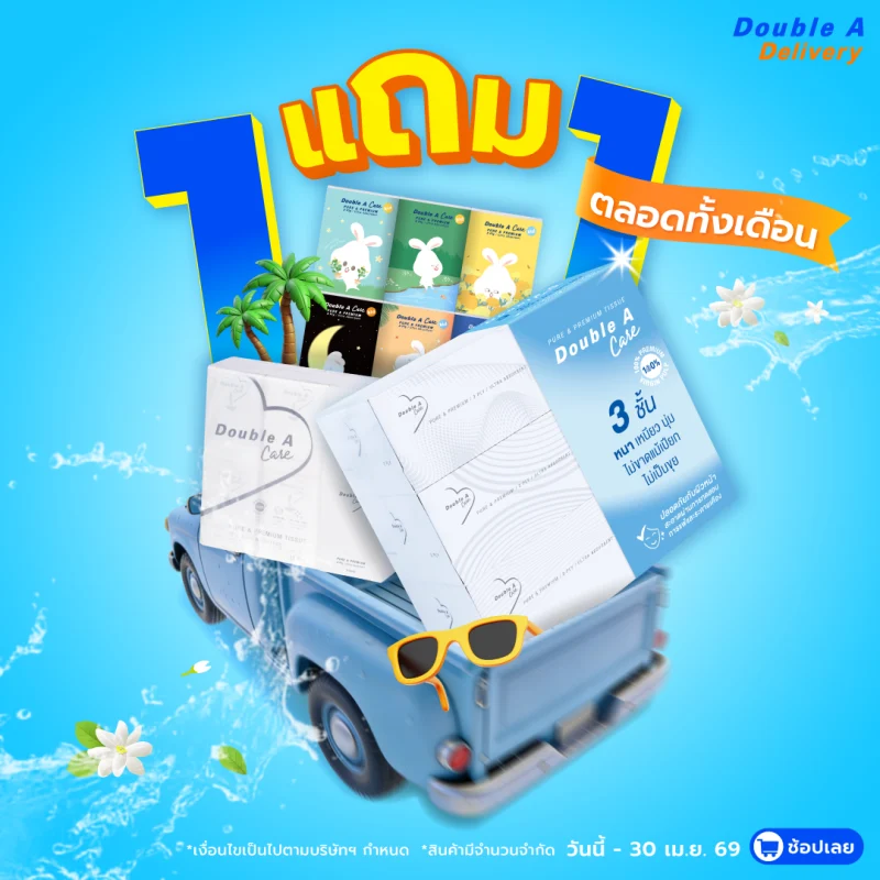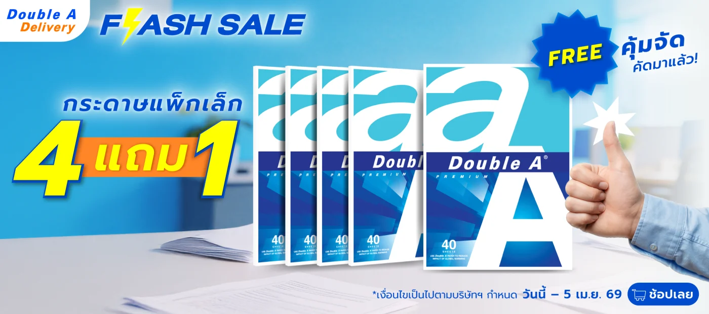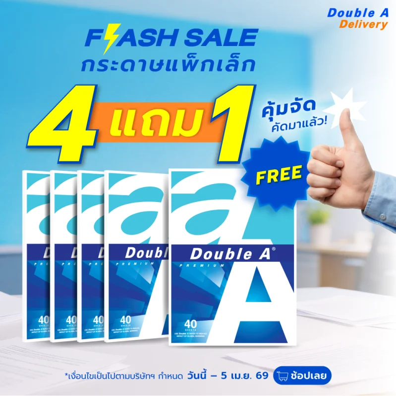 กระดาษถ่ายเอกสาร Double A 90 แกรม ขนาด A4 จำนวน 10 กล่อง รับฟรี Anitech พัดลมตั้งพื้น มูลค่า 990.-