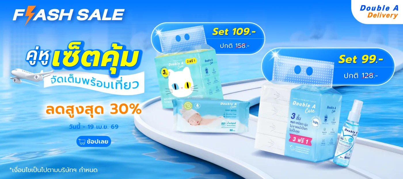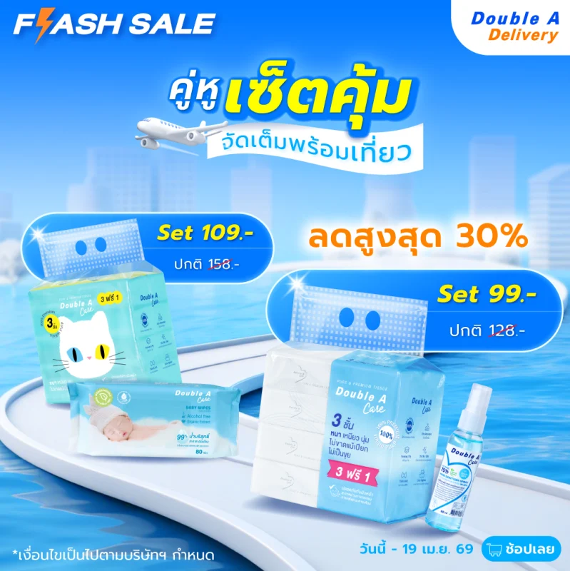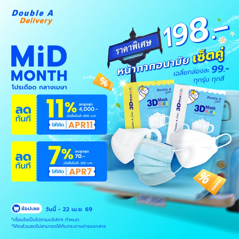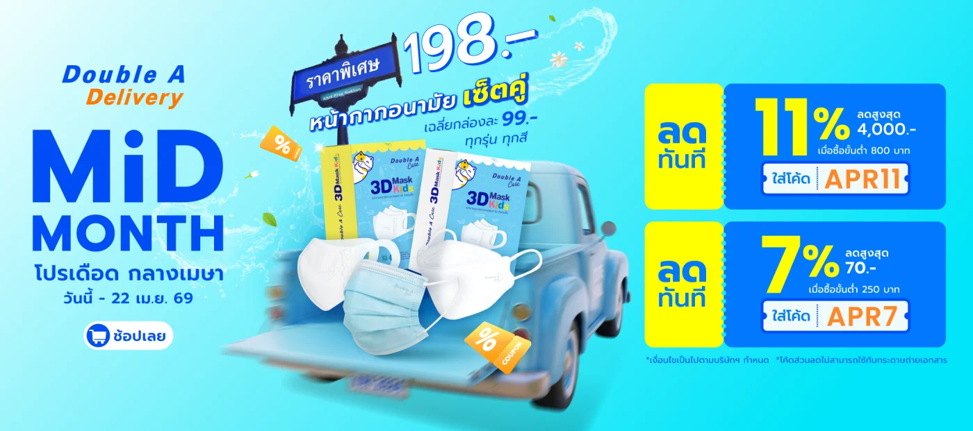 Double A Care เซต [หน้ากากอนามัยเด็กโต Size M คู่กับ เบบี้ ไวพส์ เพียว วอเตอร์ บรรจุ 80 แผ่น/แพ็ก]