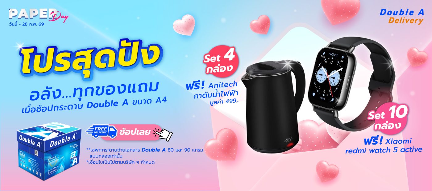 กระดาษถ่ายเอกสาร Double A 80 แกรม ขนาด A4 จำนวน 10 กล่อง รับฟรี Xiaomi watch 5 Active มูลค่า 1,090.-