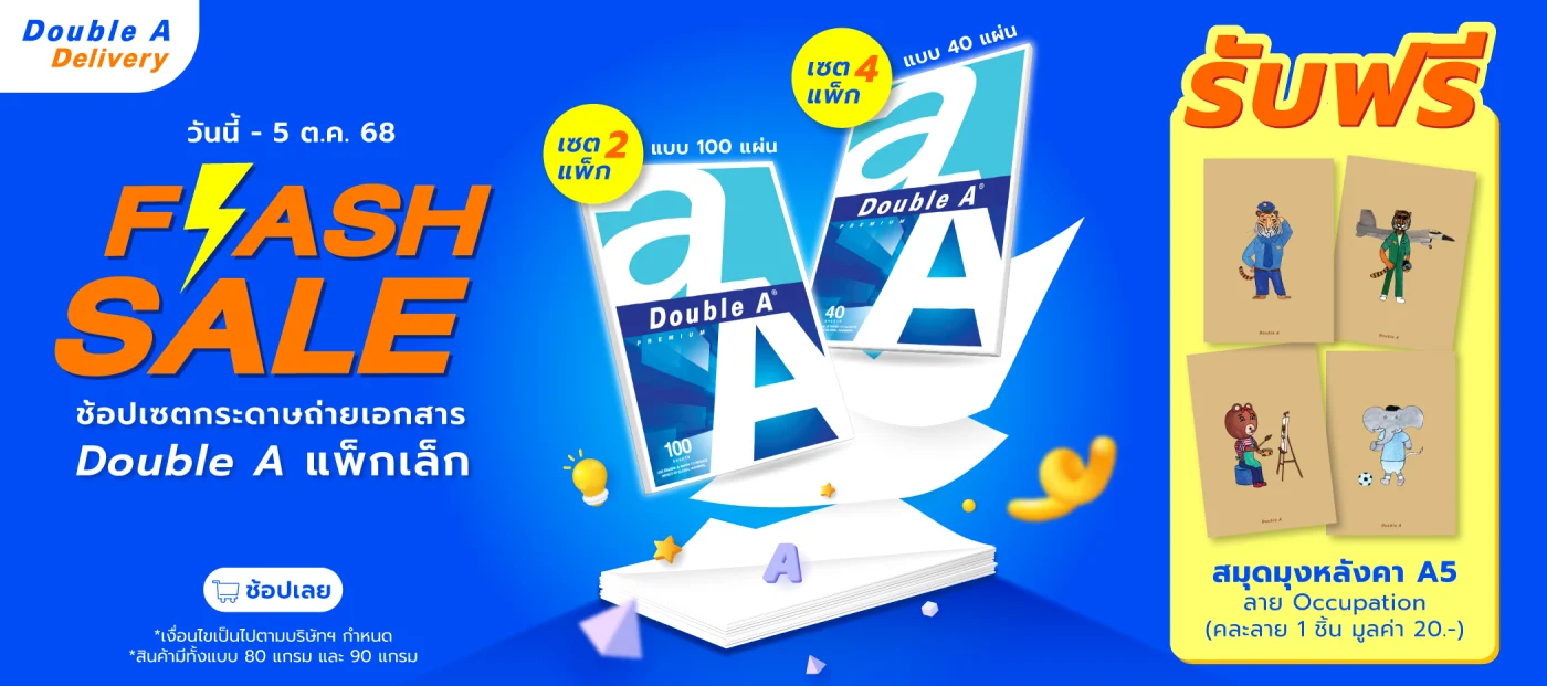กระดาษถ่ายเอกสาร Double A 80 แกรม ขนาด A4 จำนวน 4 กล่อง รับฟรี Asaki หุ่นยนต์ดูดฝุ่น มูลค่า 490.-