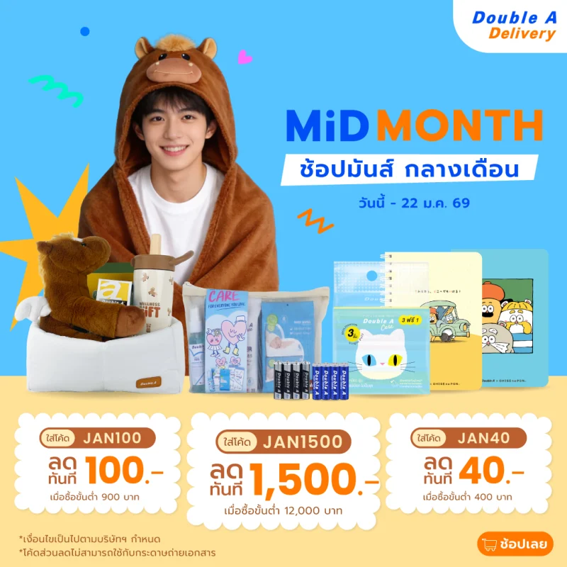 กระดาษถ่ายเอกสาร Double A 80 แกรม ขนาด A4 จำนวน 10 กล่อง รับฟรี Hafele หม้อต้มไฟฟ้า มูลค่า 1,090.-