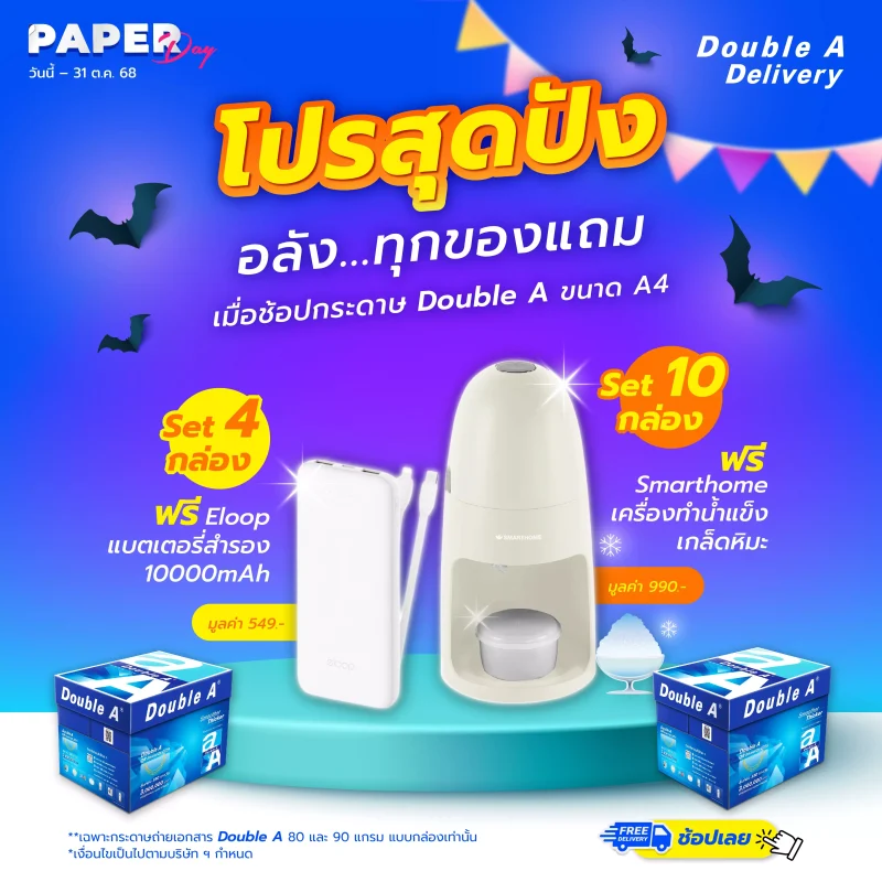 กระดาษถ่ายเอกสารดั๊บเบิ้ล เอ A4 80แกรม 40แผ่น 1แพ็ค แถมฟรี Sticky Note 2×3 นิ้ว (คละสี)