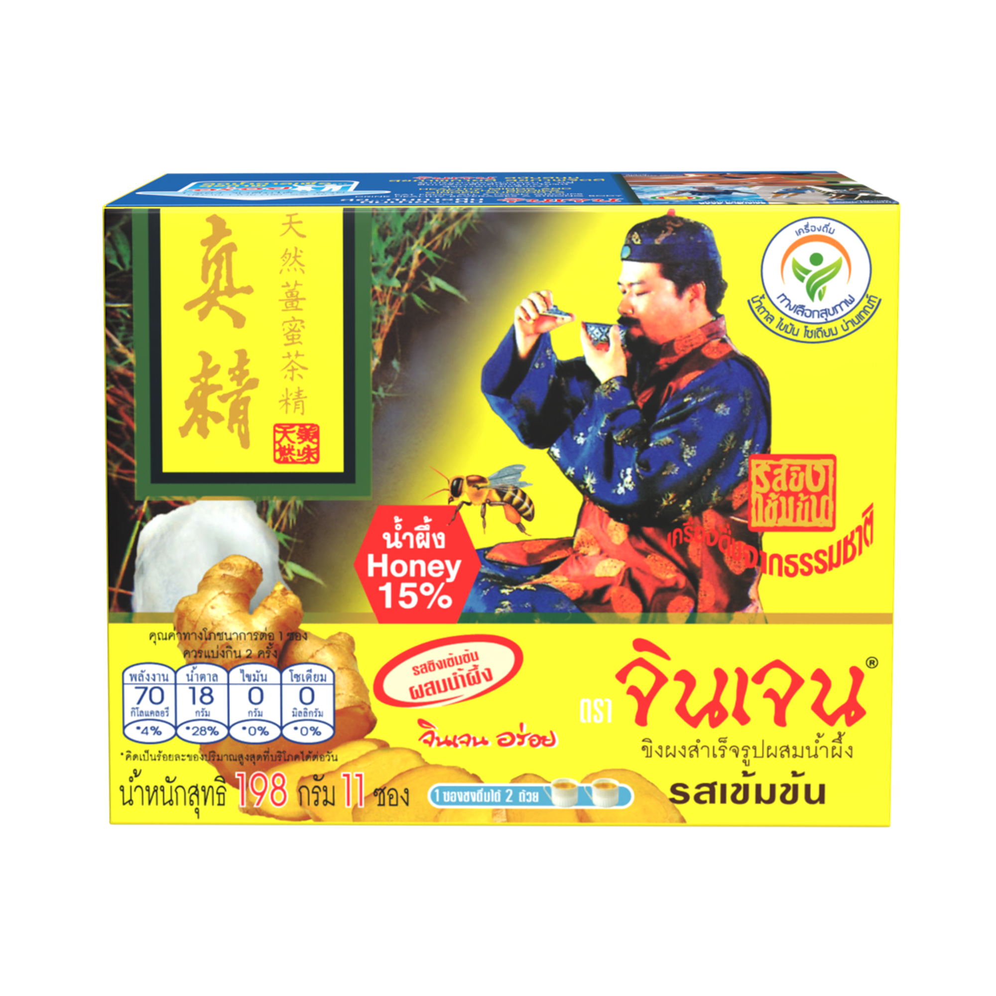 4. “จินเจน” ขิงผงผสมน้ำผึ้ง รสเข้มข้น ขนาด 198 กรัม (11 ซอง X 18 กรัม) 1 กล่อง