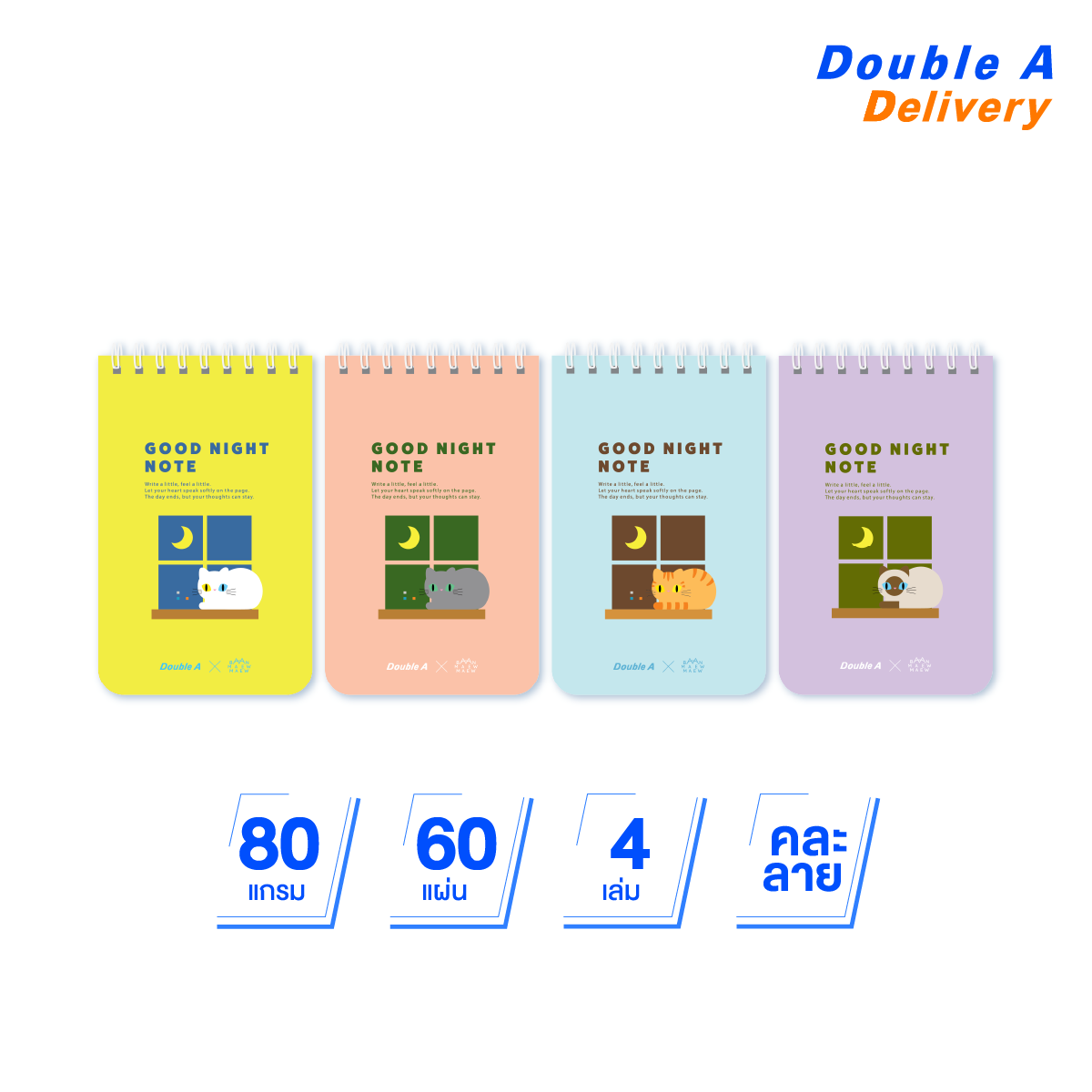 | สมุดโน้ตลายลิขสิทธิ์แท้ Double A x Baan Maew Maew เพิ่มความสดใสให้ทุกการจดบันทึก กับคาแรกเตอร์น้องแมวไทยสุดน่ารัก – Exclusive เฉพาะ Double A เท่านั้น – กระดาษคุณภาพดี เนียนเรียบ เขียนลื่น – ใช้สำหรับจดบันทึกข้อความ พกพาได้ – เนื้อในพิมพ์เส้นบรรทัด ช่วยจัดระเบียบการเขียน อ่านง่าย |