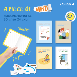| -สมุดบันทึกปกอ่อน เคลือบด้าน พิมพ์ 4 สี ดีไซน์ “A Piece of Mind” คละ 4 ลาย – เนื้อในกระดาษคุณภาพดี เนียนเรียบ เขียนลื่น -ใช้สำหรับจดบันทึกข้อความ พกพาได้สะดวก |