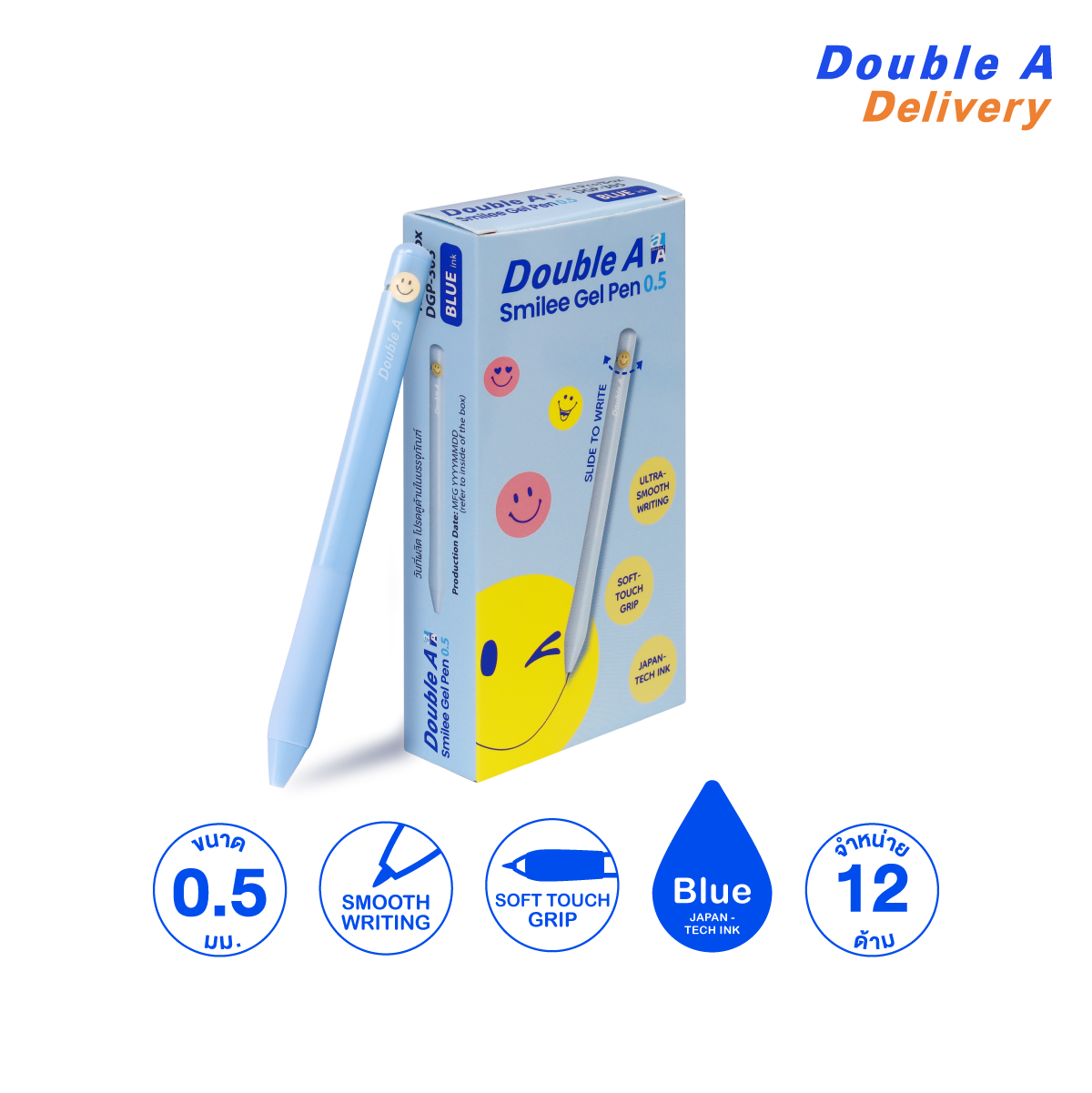 ![[12 ด้าม] ปากกาเจล ดั๊บเบิ้ล เอ 0.5 มม. รุ่น Smilee สีฟ้าพาสเทล หมึกน้ำเงิน - Image 2](https://delivery.doubleapaper.com/wp-content/uploads/2025/12/Smilee_Online-04_0.jpg)