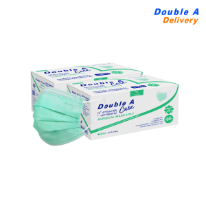 ‘Double A Care หน้ากากอนามัยทางการแพทย์ ชนิดยางยืด 3 ชั้น สีเขียว