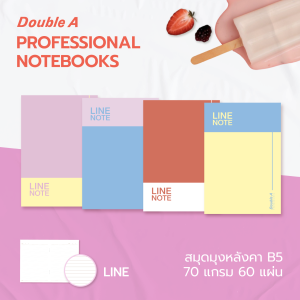 | เรียบง่าย น่าเชื่อถือ คือดั๊บเบิ้ล เอ โปรเฟสชั่นนอล – สมุดดั๊บเบิ้ล เอ โปรเฟสชั่นนอล 70 แกรม – ปกกระดาษ ผิวเคลือบด้าน – กระดาษคุณภาพดี เนียนเรียบ เขียนลื่น – ใช้สำหรับจดบันทึกข้อความพกพาได้ – เนื้อในพิมพ์เส้นบรรทัด ช่วยจัดระเบียบการเขียน อ่านง่าย |