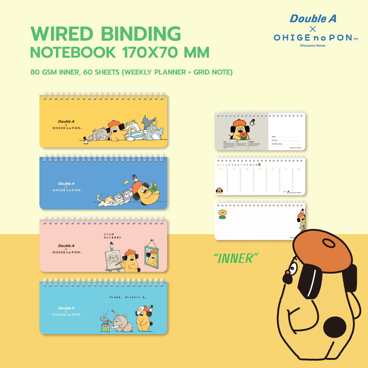 ![[4 เล่ม] Double A สมุดสันห่วงแพลนเนอร์ 170x70 มม. 80แกรม 60แผ่น ลาย OHIGE no PON - Image 2](https://delivery.doubleapaper.com/wp-content/uploads/2026/01/SKU_Ohige-02-DADL-03.png)