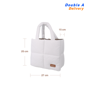 – กระเป๋านุ่มนิ่มสีขาว ขนาด 25 x 27 ซม.