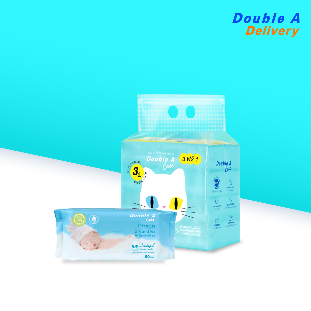 ![เซต [ทิชชูทราเวลแพ็กลายบ้านแมว 1 แพ็ก + เบบี้ ไวพส์ เพียว วอเตอร์ บรรจุ 80 แผ่น/แพ็ก 1 ชิ้น] Double A Care - Image 4](https://delivery.doubleapaper.com/wp-content/uploads/2023/05/LINE_ALBUM_สื่อการขาย-Pure-_-Premium-Tissue-New-25.11.67_250312_2.jpg)