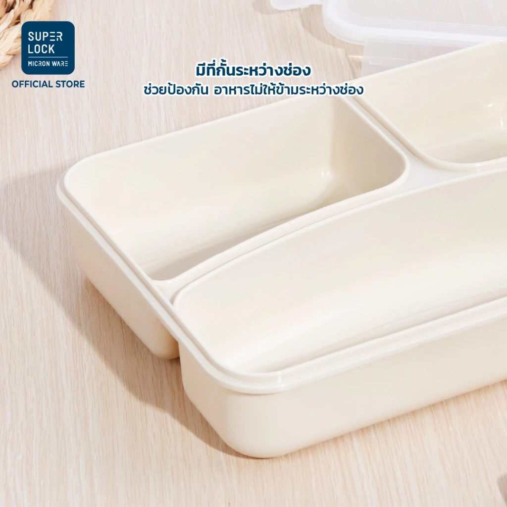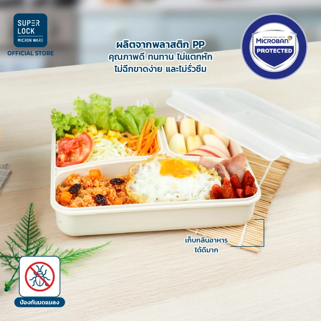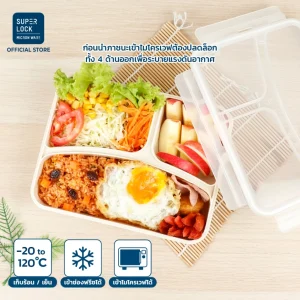 Super Lock กล่องข้าว 3 ช่อง รุ่น 6185 (1,100 มล.) กล่องใส่อาหาร กล่องพลาสติก Food Lunch Box กล่องถนอมอาหาร
